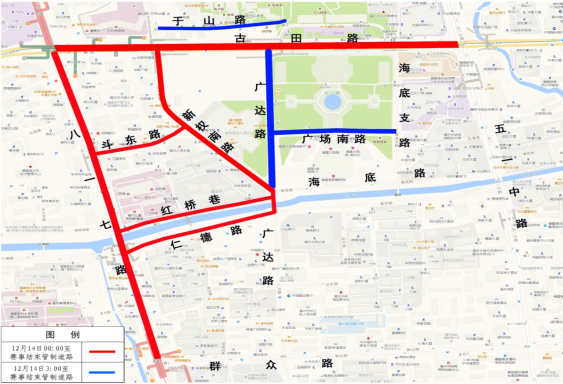 福州市公安局关于2025福州马拉松期间部分道路实行临时交通管制的通告 2025福州马拉松定于12月14日7时30分在福州市举行,届时将有3.5万名运动员参加比赛。为确保赛事活动安全顺利进行,道路交通有序、安全、畅通,经福州马拉松组委会申请,根据《中华人民共和国道路交通安全法》第三十九条、《中华人民共和国人民警察法》第十五条等规定,决定对以下道路实行临时交通管制,现通告如下: 一、赛事起点管制区 2025年12月14日0时至赛事结束,赛事起点周边道路古田路(五一中路至八一七路)、八一七路(古田路至群众路)、新权南路、广达路(海底路至仁德路)、斗东路、红桥巷、仁德路(八一七路至广达路)实行交通管制,禁止车辆通行。 2025年12月14日3时至赛事结束,赛事起点周边道路于山路、广达路(古田路至海底路)、广场南路实行交通管制,禁止车辆(持专用通行证车辆以及周边单位车辆除外)通行。 2025年12月14日,地铁南门兜站于运营开始至外部道路交通管制结束期间,关闭H、G、M、N出入口。