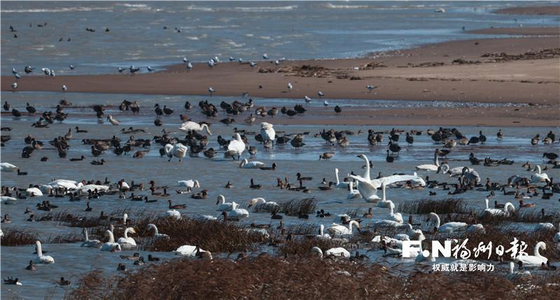 新修订法规实施3年,带来“绝美鸟浪” 闽江河口国家湿地公园明年四季度开园 潮水轻抚滩涂,引万羽候鸟齐飞!明年第四季度将正式开园的闽江河口国家湿地公园近日出现“绝美鸟浪”——成群的小天鹅优雅振翅,与黑脸琵鹭、黑嘴鸥等110余种珍稀候鸟在海潮中共舞,候鸟数量再创新高。这是新修订的《福州市闽江河口湿地自然保护区管理办法》自2023年元旦实施以来,湿地保护工作在法治护航下取得的显著成效。