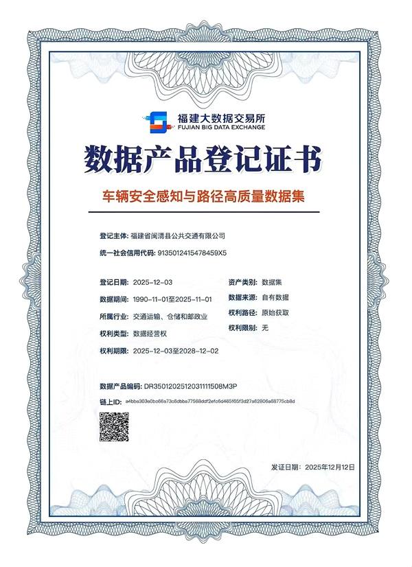 数据产品登记证书。 此次交易落地,具有多重深远意义:它验证了县域公共数据同样具备可观的市场价值与跨区域应用潜力,为同类数据的开发树立了信心;它为数据所有者开辟了可持续的价值实现渠道,未来可通过数据产品持续交易、授权运营等方式获得收益,反哺主业发展;它探索出了一条合规、安全、高效的数据要素市场化路径,为更大范围的数据流通交易积累了宝贵经验。 对闽清县域发展而言,此次成功实践起到了强大的示范引领作用。它生动论证了供水、供电、供热等公用事业数据,以及橄榄、陶瓷等特色产业数据,都蕴含着巨大的开发价值。闽清县计划系统总结此次改革经验,形成一套标准化、可操作的工作指南,逐步向全县拥有数据资源的国有企事业单位及优势产业企业推广复制,旨在培育一批数据驱动型创新应用和商业模式。 闽清县将以此次公交数据资产化成功实践为起点,持续深化数据资产全过程管理试点工作。深入推进“资产数据化”,完善各类国有资产的数字化记录与管理;稳步推动“数据资产化”,将更多符合条件的高价值数据资源转化为可计量、可交易的数据资产。通过“两化”融合互促,闽清县将逐步把成功经验拓展至各领域,系统性释放数据要素潜能,为县域经济高质量发展注入强劲的数智动力,全力谱写“数字闽清”建设新篇章。(记者 谭湘竹 通讯员 刘佳慧) |