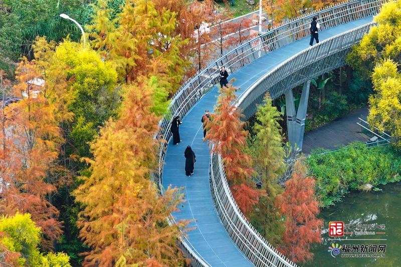 在福道公园的梅峰山地公园景点,数百棵池杉悄然披上五颜六色的“彩装”,成为冬日榕城的一道亮丽风景,引来市民游客“打卡”赏景。