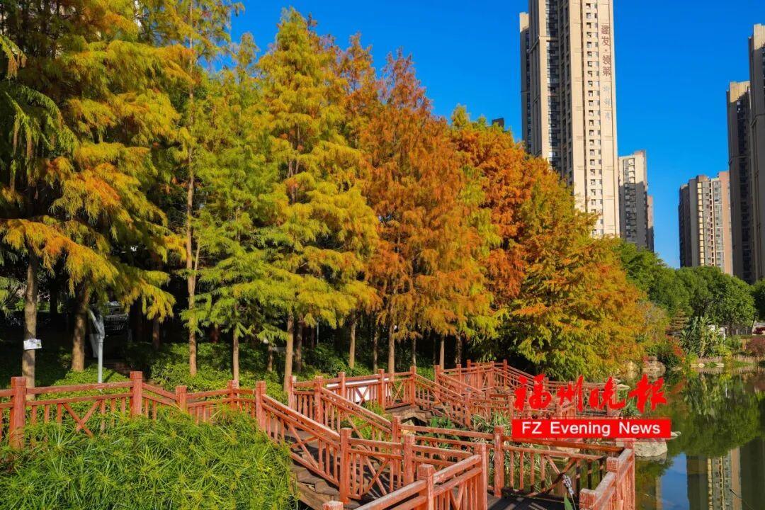 近日,福州琴亭湖公园迎来杉树的最佳赏景期,成为福州网红打卡地。