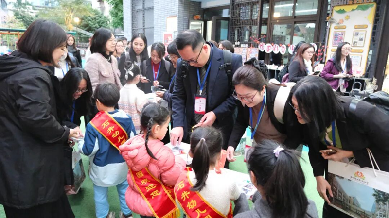 参观团还来到了鼓二教育集团石井幼儿园和小朋友们互动,活动接近尾声时,双方在教育理念、课程设计、学生培养等方面展开了轻松而深入的对话。