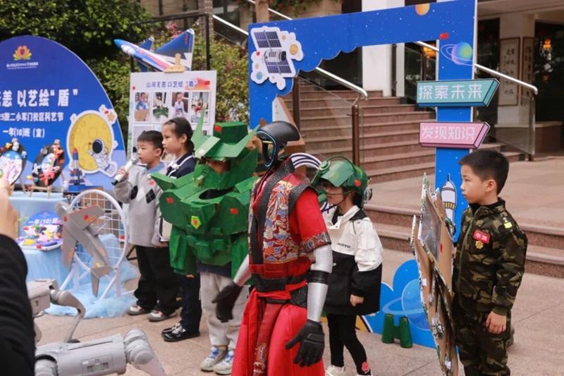 活动现场,一年级的孩子们展示了可穿戴式防护装备,虽然设计稚嫩,却充满巧思;四年级的智能海防警戒浮标,体现了孩子们对科技应用的初步理解;五年级的动力小车,则展现了他们解决实际问题的能力……每个展位前,小讲解员们用精炼生动的语言,清晰阐述作品的设计理念与功能亮点,从容应答现场提问。
