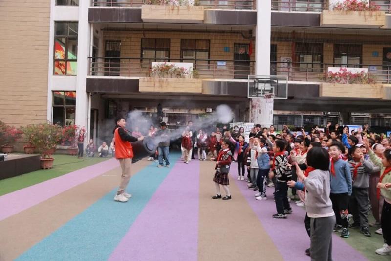 升旗台处的舞蹈表演与科学秀将现场气氛推向高潮。音乐响起,孩子们在阳光下起舞;科学老师用简单的实验展示奇妙的物理现象,引来阵阵惊叹。艺术与科学在此刻交汇,展现出教育最生动的模样。