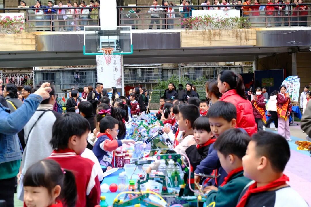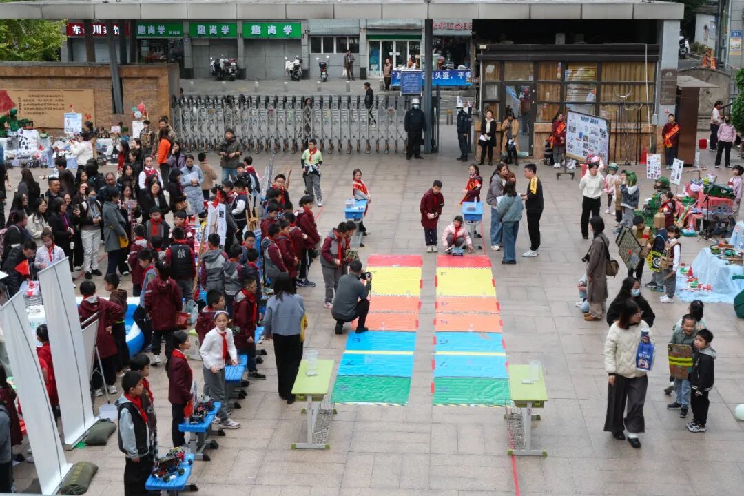 “清澈的爱,只为中国。”福建宁德籍烈士陈祥榕的这句深情告白,穿越时空,如精神灯塔照耀少年心间。为缅怀以陈祥榕为代表的边防英雄,传承赤诚爱国精神,福州市鼓楼第二中心小学精心策划“山河无恙 众‘盾’护国——守卫边境线大作战”主题科技节,全校学子以智慧为笔、创意为墨,打造一件件“守护装备”,以少年担当致敬那些以青春铸界碑、用生命护家国的边防战士。 开幕式燃动全场科技魅力点亮初心 科技节开幕式在热血氛围中拉开帷幕。活力四射的舞蹈率先登场,孩子们踏着激昂旋律舒展身姿,每一个动作都洋溢着少年蓬勃的朝气与向上的力量。紧接着,一场精彩绝伦的科学实验秀点燃全场热情:液氮喷雾瞬间化作如梦似幻的“云雾”,将现场变成奇妙的科学秘境;空气炮发射出灵动的烟雾圆环,在欢呼声中穿梭飞舞;干冰气球快速膨胀、色彩奇幻切换……一系列实验直观演绎科学的神奇与魅力,让孩子们沉浸在科学探索的乐趣中。