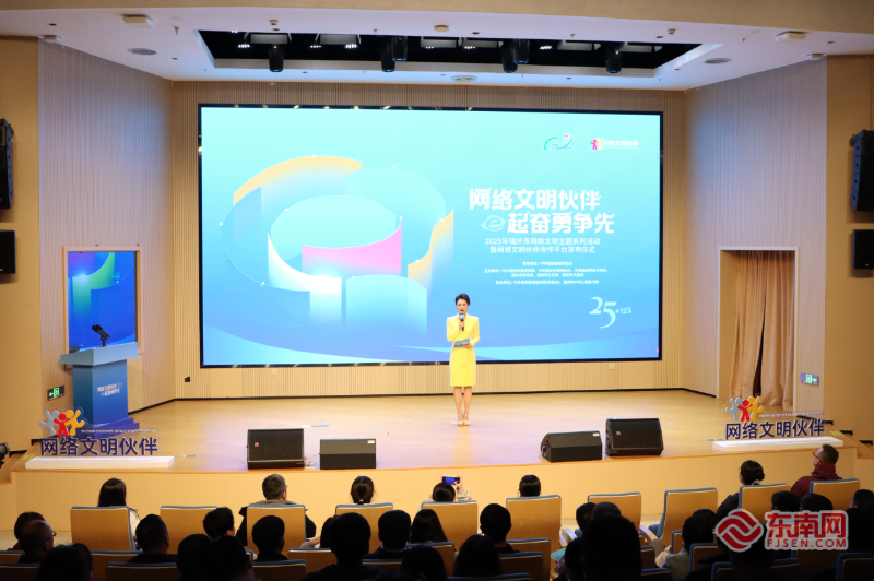 活动现场。东南网记者朱琳 摄 12月30日晚,2025年福州市网络文明主题系列活动暨网络文明伙伴协作平台发布仪式在福州市少儿图书馆举行。活动由福建省委网信办指导,福州市委宣传部、福州市委网信办等单位联合主办,旨在凝聚社会各界力量,深化网络文明建设,为福州加快建设现代化国际城市注入强劲的网信动能。省委网信办副主任刘建斌,市委常委、宣传部部长、统战部部长黄建雄出席并先后致辞。 汇聚伙伴力量:构建网络文明共建共享新生态 “网络文明建设没有终点,奋勇争先永远在路上……”活动在回顾福州2025年网信工作亮眼答卷中拉开序幕。 过去一年,福州网信系统紧扣“奋勇争先、多作贡献”主旋律,在正面宣传、综合治理、网络安全、网信为民等方面取得了丰硕成果,在网络育人实践、网络空间道德建设、网络空间文化培育、网络谣言治理、网络生态治理等五大主题的实践探索中,也涌现了一批优秀案例,以实干担当谱写网络文明建设的福州篇章。 体教联动,做屏幕前的“云教练”;数字赋能,做家长身边的“云导师”;e码直达,把艺术课堂装进口袋……来自福州各行各业的网络文明伙伴们,正通过多元、生动的实践探索,接力构建一个清朗、活力的网络文明空间。 市委网信办主任、市委宣传部副部长林家枢表示,本次活动以深化“网络文明伙伴”理念为核心,通过新老协同、部门协同、路径协同,立足文明、依靠伙伴、依托网络,构建一个由党委牵头部门、政府职能部门、行业协会、互联网企业、网络大V、广大网民共同参与的“伙伴矩阵”,共同汇聚e起奋勇争先的奋进力量。