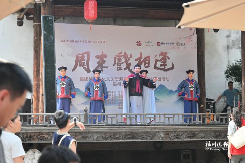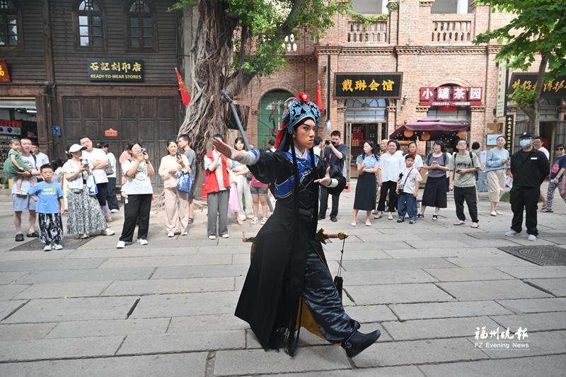 游客头戴“三条簪”、手持油纸伞,打卡三坊七巷。记者 林双伟 摄 剧场赋能 让非遗“登堂入室” 2025年以来,福州非遗与剧场艺术深度联动,打造出多部现象级作品,让古老技艺在沉浸式体验中焕发新生。作为闽剧院突破性力作,《三山旧梦》在去年国庆期间亮相。该剧以柳永游历福州的旅程为脉络,将端午龙舟、坊巷市声等福州元素融入表演,并创新设置诗词接龙、香囊互赠等互动环节,让观众在穿越千年的文化之梦中感受闽剧魅力。