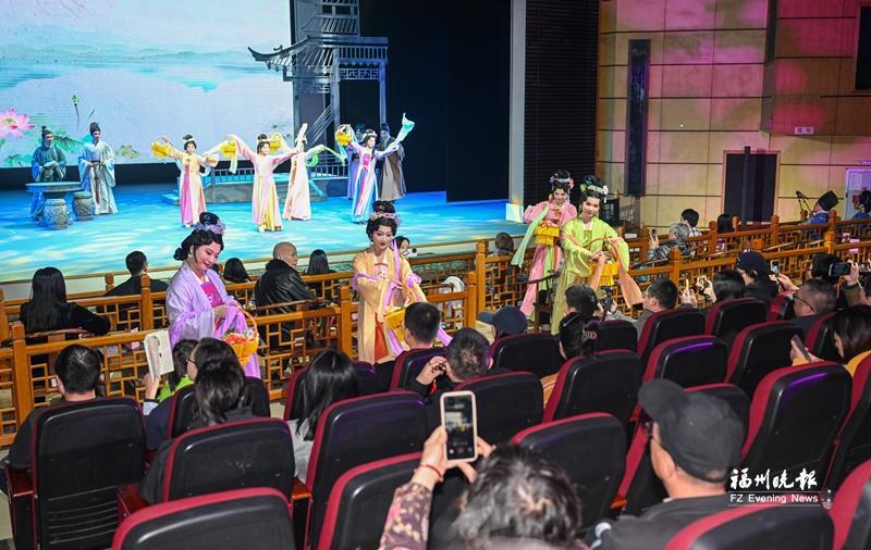 《三山旧梦》演出现场,演员向观众赠送香囊。记者 张旭阳 摄 “我们要留住闽剧的‘魂’,但要以当代人觉得好听的方式呈现。”音乐总监陈强介绍,团队耗时数月将《茉莉花》《叹四季》等百年曲牌融入现代编曲,以管弦乐与传统民乐的碰撞打破艺术边界。导演林颖表示,“普通话念白+福州话唱腔”的设计,正是为了让更多人走近并爱上闽剧。 紧随其后,全国首演的互动式剧场演艺《恭喜发财》再掀热潮。该剧以南宋福州海丝贸易为背景,将福州评话伬艺与国乐新编完美融合,一爿铙钹既是醒木,更似“时空开关”,一击之间串联古今。舞台上,身着南宋服饰的演员翩跹起舞,软木画、油纸伞等非遗元素点缀其间;舞台下,观众猜灯谜、参与斗茶拍卖,化身南宋市井一员,亲身感受闽商“茶要有骨,人更要有骨”的坚韧风骨。 “没想到非遗可以这么好玩,看完演出我立刻去查了福州评话和伬艺的历史。”年轻观众张晓斐的感慨,折射出上述两部作品的成功——它们不仅让非遗赢得了年轻受众,更探索出“非遗+剧场+沉浸”的全新传承模式。