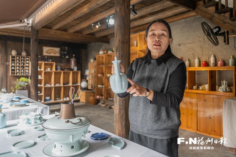 刘榕冰在介绍由青白瓷打造、配以铜质锅芯的陶瓷火锅套组。记者 林双伟 摄 古窑寻根 碎瓷片里觅得传统技艺 驱车离开福州市区,约50分钟后,便可从都市的喧嚣遁入闽清东桥镇官圳村的宁静。远山如黛,这个村庄最引人入胜的,是那弥漫在空气里的、跨越千年的瓷韵。 在这里,记者见到了刘榕冰。她出生于有“千年瓷都”美誉的闽清县,从小对泥与火的故事耳熟能详。2006年投身陶瓷外贸生意后,刘榕冰敏锐察觉家乡产业虽大却困于“低端”藩篱。 转折发生在2007年,博物馆中一件义窑青白瓷残片,以其清雅绝伦的釉色瞬间击中了她。“那是一种直击心灵的美。”刘榕冰回忆道,“我立刻意识到,这才是我们闽清陶瓷应有的底色和高度。” 怀揣着对故乡文化的使命感,刘榕冰毅然踏上了义窑的复兴之路。这条路,始于最基础的“寻根”与“复原”。她组建团队,联合景德镇陶瓷大学等高校的专家,如同考古学者般,多次深入东桥镇义由村,在古窑遗址中采集标本,进行艰苦的田野调查。通过现代科技手段与传统文献考证相结合,他们反复试验,逐步揭开了宋代义窑从练泥、拉坯、修坯,到模印、堆塑、施釉等全套传统手工技艺的神秘面纱。历经多年钻研与实践,刘榕冰本人也从一名企业家,淬炼成为熟练掌握核心技艺的非遗代表性传承人。 2018年,闽清义窑青白瓷传统手工技艺成功列入福州市非物质文化遗产代表性项目名录。次年,刘榕冰被认定为该项目代表性传承人。破碎的瓷片,终于在她和团队手中,重新拼接成了一部完整而鲜活的“历史画卷”。 古艺新创 续写新时代“海丝”故事 传承绝非简单的复刻,非遗的生命力在于持续地创新与融入时代。 掌握了传统技艺“密码”的刘榕冰,思考的更多的是如何让千年古窑“活”在当下。2014年,她创立福建索佳艺陶瓷有限公司,明确提出“陶瓷+文创+生活方式”的发展理念,致力于对义窑青白瓷进行创造性转化与创新性发展。 在官圳里景区的陶瓷基地,这一理念得到了生动实践。这里不仅是生产工坊,更是开放的美学课堂。景区推出的“陶瓷×生活美学工坊”,巧妙地将陶瓷制作与周边自然环境融合。孩子们在向日葵花田旁,亲手拉坯、刻画,将眼前盎然生机融入陶泥,打造出独一无二的“向日葵陶器”茶具。此外,食育工坊、光影陶瓷、花田秘境、陶瓷手串制作等多元主题活动,让参与者在动手体验中,深切感受陶瓷艺术与大自然的双重魅力。非遗研学,成为连接历史与未来、技艺与心灵的桥梁,每年吸引上万人次前来,官圳里也成为中小学非遗研学实践基地。 “要让陶瓷回归生活,用品味改变生活。”刘榕冰告诉记者,团队专注于在垂直领域开发文创产品,推动青白瓷与现代生活美学深度融合。记者看到,一款由青白瓷打造、配以铜质锅芯的陶瓷火锅,便是其中的代表作。它既保留了传统火锅的实用性,又因其典雅温润的材质与造型,提升了用餐的美学格调。“这款火锅很受欢迎。”刘榕冰说,由于产量有限,目前他们的青白瓷产品走的还是“私人定制”的销售方式,但她的目光已投向更广阔的市场,“随着产能提升,我们计划通过跨境电商等平台,让这些承载着闽清文化的青白瓷作品重新走向海外,续写新时代的‘海丝’故事。” 产业的升级,离不开品牌的塑造与集群的发力。陶瓷产业是闽清的重要支柱产业之一,如今闽清县深刻意识到,发展陶瓷产业,要从以“工业瓷”为主导,向高附加值的“艺术瓷”“功能瓷”等领域拓展,这必须打响地域品牌。近年来,闽清成功注册“闽清陶瓷”及“闽清青白瓷”国家地理标志证明商标,着力打造统一的“闽清窑”地域公共品牌,推动“五瓷并茂”(指建筑陶瓷、日用陶瓷、艺术陶瓷、功能陶瓷、工业陶瓷协调发展)的产业新格局。政府建设陶瓷科技孵化器、行业技术创新中心,为创业者提供平台。古老的窑火,正点燃县域经济新质生产力的引擎。 沃土育才 千年窑火生生不息 任何产业的长远发展,核心在于人。非遗的传承与陶瓷产业的振兴,亟须一支有情怀、懂技术、善创新的人才队伍。 刘榕冰对此感触尤深:“我们很欣喜地看到,现在已经有10多名从景德镇陶瓷大学等专业院校毕业的年轻人加入我们,他们带来了创意与活力。” 为了系统化培养本土人才,闽清县多措并举,构建起多层次的人才培育体系。2024年,闽清陶瓷产业学院首期职业技能培训班正式开班,聚焦全县陶瓷行业工作者,通过理论授课、现场教学与上手实操相结合的方式,集中传授陶瓷文化、艺术鉴赏、装饰技法等进阶知识,助力产业工人向高技能人才转型。 与此同时,教育与研学体系的构建,为产业未来播种下希望的种子。已被评为闽清县中小学研学实践教育基地的东南瓷都研学基地,将在非遗技艺代表性传承人的推动下让研学体系更加完善。孩子们在这里不仅能观看从泥土到瓷器的蝶变过程,更能亲手体验拉坯、彩绘,在心中埋下陶瓷文化的种子。校企合作也在深入,相关企业与多所高校的联动,正催生出更多兼具传统韵味与现代审美的创意陶瓷文创产品。 面对散落山间的珍贵古窑遗址,保护与开发如何平衡,是另一道关键课题。作为福州市政协委员,刘榕冰连续多年在市两会上呼吁加强义窑文化遗产保护,建设非遗保护示范基地。她的呼声得到了回应,2025年,义窑文化旅游区的规划正式启动。蓝图之中,古窑遗址博