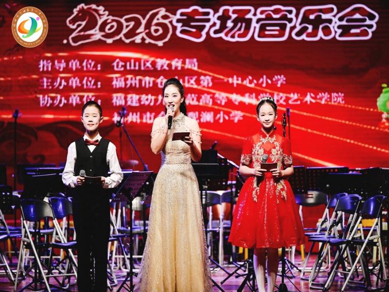仓一小2026年“逐梦之声迎新春”专场音乐会现场 音乐会在仓山区第一中心小学逐梦管乐团的激昂演奏中拉开序幕。该乐团自2015年组建以来屡获佳绩,曾获评省级中小学生标准乐团,并在2025年荣获福州市第八届中小学生艺术节器乐比赛一等奖、福建省第八届中小学艺术节现场展演二等奖。在常任指挥陈纯灵老师的带领下,乐团以雄浑而灵动的旋律,展现出扎实的艺术功底与昂扬的少年风采。 音乐会中,各艺术团队竞展风采。观澜小学博雅童声合唱团初绽光芒,一曲《萱草花》以清澈温柔的童声打动全场;仓山区第一中心小学逐梦合唱团以小组唱形式演绎《童年》与《洒满人间的爱》,歌声中满载童真与温情;仓山区第一中心小学逐梦弦乐团在指挥徐玲老师的带领下,以丝绒般的音色演绎多首经典,优雅与热烈交织,营造出浓厚的艺术氛围。 据介绍,逐梦合唱团创建于2012年,曾多次荣获福州市小茉莉合唱比赛金奖,2025年更一举夺得福建省第八届中小学生艺术节声乐展演一等奖,并被推送全国示范性学生艺术团。本次音乐会中,逐梦合唱团A团先后呈现了《灯之河》、无伴奏非洲民歌《Bonse Aba》以及《中国塔》,歌声澄澈而充满力量,展现了对多元文化的理解与对家国的深情。