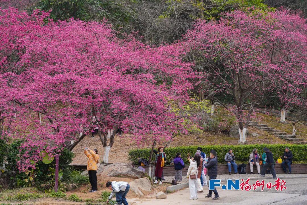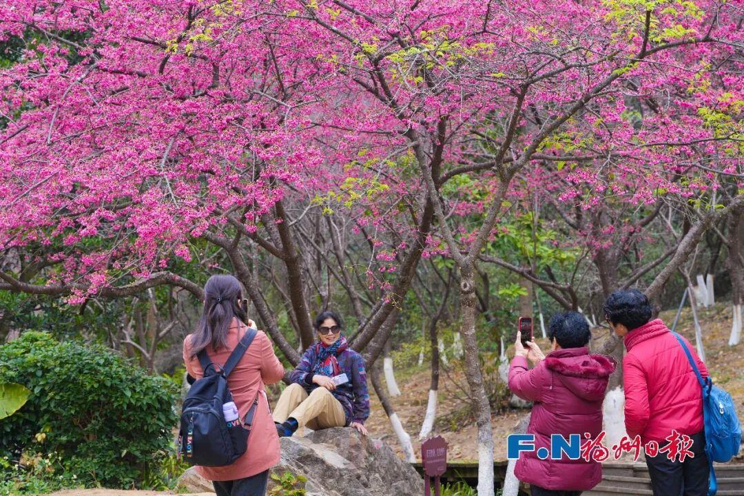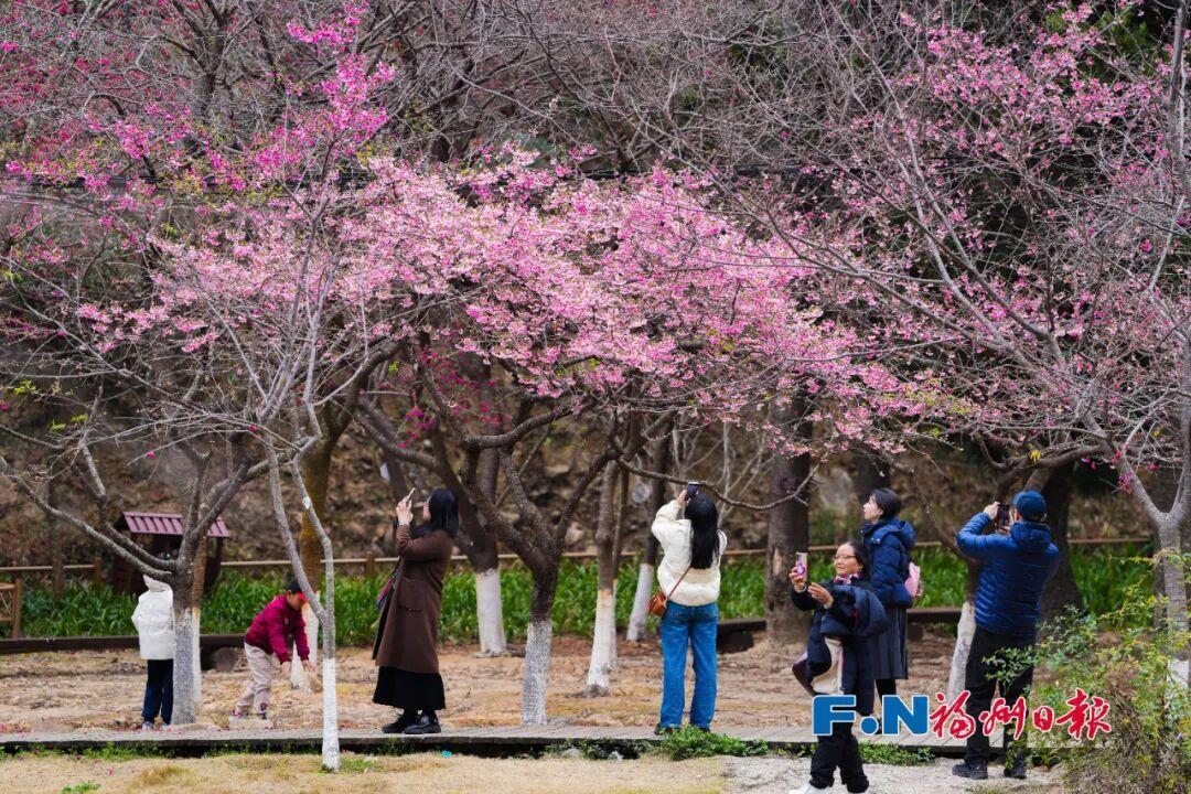 2月2日,福州植物园(福州国家森林公园)樱花园里,来自北京的李先生如愿看到叉尾太阳鸟与玫红色福建山樱花同框画面,过去两年,福州植物园引进了25个各类樱花品种,园内品种接近40个,2000多株樱花树吸引全国游客奔赴这场“福州红”之约。 作为福州赏樱的核心地标,福州植物园早在2004年就开始试种山樱花,并在2008年建成樱花园。这两年,福州植物园便持续深耕樱花引种与培育,如今占地约2.5公顷,各类樱花植株超过2000株。不同于国内多数赏樱地以日本引进品种为主的现状,福州植物园内的樱花品种以本地的福建山樱花为主。