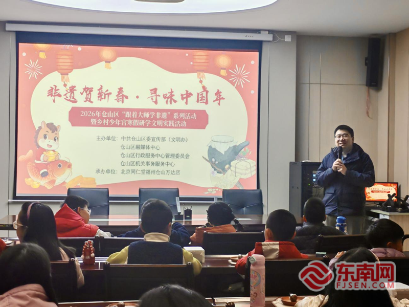 东南网2月6日讯(本网记者 陈巧玲)2月6日,“非遗贺新春·寻味中国年”——2026年仓山区“跟着大师学非遗”系列活动暨乡村少年宫寒假研学文明实践活动在仓山区行政服务中心举办。
