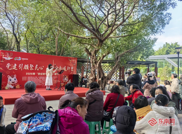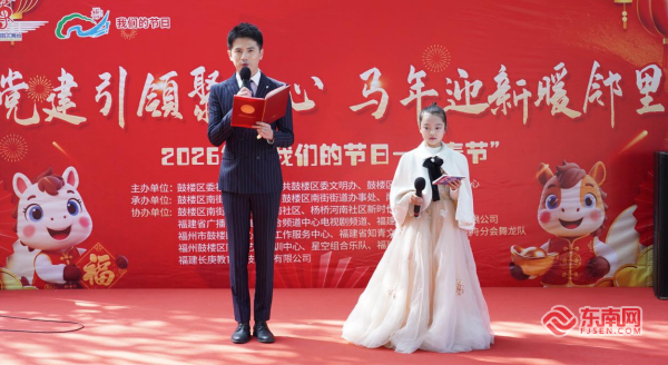 东南网2月11日讯(本网记者 朱琳 通讯员 林鹏群)2月10日上午,鼓楼区南街街道杨桥河南社区公园内热闹非凡。由杨桥河南社区党委精心策划的“党建引领聚民心 马年迎新暖邻里”2026年“我们的节日——春节”文艺汇演圆满举行。此次活动是“多彩闽都”文化惠民工程的生动实践,也为社区新时代文明实践站注入了新的活力,社区居民欢聚一堂,在欢歌笑语中共迎新春佳节,共品邻里温情,共话美好未来。