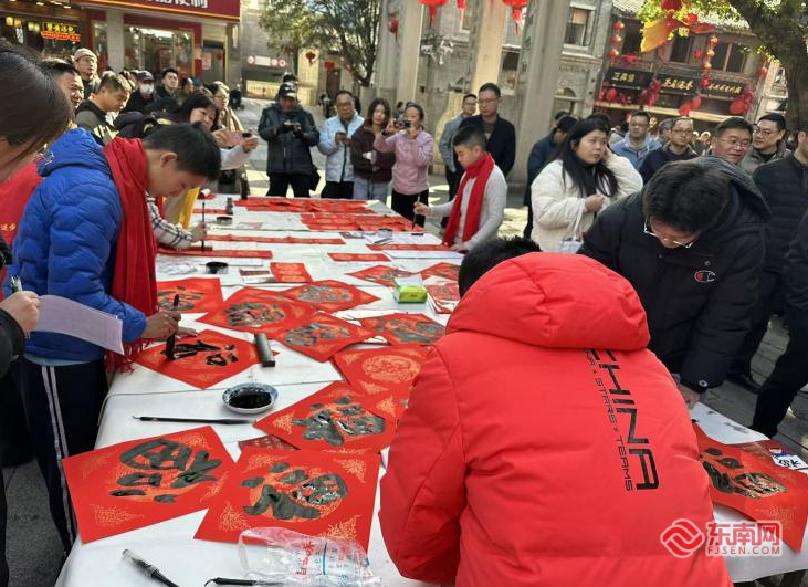 东南网2月11日讯(本网记者 朱琳 通讯员 林鹏群)2月10日上午,鼓楼区三坊七巷文化街区南后街北口广场洋溢着浓厚的节日氛围,“马跃坊巷添福运·年年有鱼贺新春”迎新春系列活动在此温情举行。本次活动围绕文化惠民展开“多彩闽都”行动,旨在持续营造欢乐祥和、邻里相亲的节日氛围,推动中华优秀传统文化在社区深入人心。 活动以笔墨迎新为核心,融入多元民俗体验,在翰墨清香中传递祝福,于互动共创中凝聚温情。当天上午九点,广场上已汇聚众多居民与游客,暖意融融、热闹非凡。