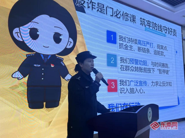 东南网2月11日讯(本网记者 朱琳 通讯员 戴涛)寒假将至,为切实提升广大师生的反诈防骗能力,筑牢校园安全防线,近日,福州市公安局鼓楼分局鼓东派出所社区民警主动作为,深入辖区屏东中学,利用学期末契机开展了一场生动实用的防范电信网络诈骗宣传活动。 活动中,民警结合当前高发的电信网络诈骗典型案例,特别是针对青少年群体易遇到的游戏账号交易、冒充熟人、刷单返利等诈骗手法,进行了深入浅出的剖析和讲解。通过播放反诈短片、发放宣传资料、现场互动问答等形式,民警向师生们揭示了诈骗分子的常用伎俩和话术,并重点传授了“不轻信、不透露、不转账”的应对要领以及遭遇诈骗后的正确处置方式。民警提醒同学们在享受寒假、畅游网络的同时,务必时刻保持警惕,保护好个人隐私及财产安全,并将所学到的反诈知识带给家人,共同筑牢家庭防诈墙。