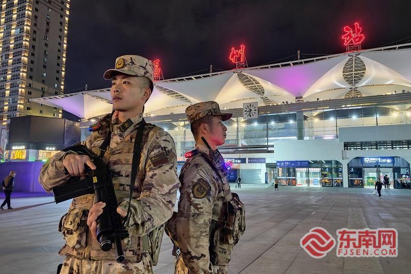 武警官兵在福州火车站外执勤。武警福州支队供图 岗位即战位 护航春运平安使命在肩 从晨光微露到夜幕深沉,执勤官兵始终以严整姿态坚守在安检口、候车厅、进出站通道等重点区域。支队科学布防、精准施策,采取定点值守、动态巡控、快速响应相结合的勤务模式,紧盯安全风险、排查各类隐患,用脚步丈量平安,用坚守筑牢防线,全力守护站区秩序稳定。 党员先锋旗帜高扬,骨干带头冲锋在前、履职尽责,新战士虚心学习、快速成长,一支召之即来、来之能战的过硬队伍,在春运战场上淬炼成色。应急力量全力驻勤备战,响应迅速、处置高效,以最快速度为旅客排忧解难,守护出行平安。