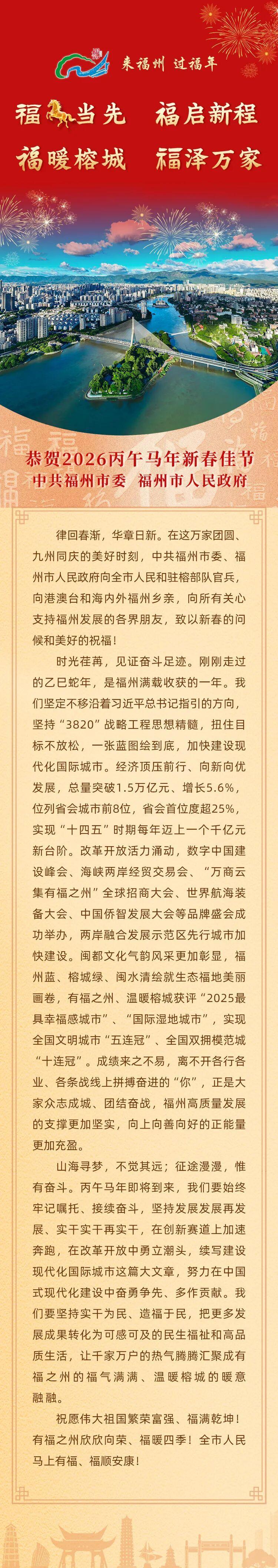 中共福州市委 福州市人民政府恭贺2026丙午马年新春佳节
