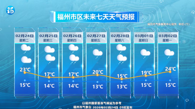 东南网2月24日讯(本网记者 朱琳)记者从福州气象获悉,春节假期后,受冷空气与暖湿气流共同影响,福州降雨迅速发展,未来一段时间将持续被阴雨天气笼罩,气温呈现起伏多变态势。 具体天气来看,24日全市以阴雨天气为主。25日白天雨水将短暂停歇;26日雨势增强,全市阴有中雨,局部大雨。其余时段以小雨量级为主。