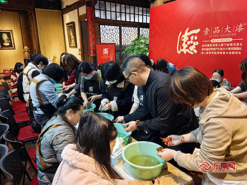 活动现场。南街街道供图 活动现场暖意融融、氛围浓厚。非遗大漆技艺传承人林晖老师手把手教学,带领大家近距离邂逅千年非遗。活动中,林老师围绕大漆文化的历史渊源、艺术特色与文化价值展开讲解,结合“三八”国际妇女节内涵,解读葫芦“福禄安康”的吉祥寓意,引导大家感悟中华优秀传统文化的博大精深。同时,老师详细演示多层髹漆、打磨推光等核心工序,拆解技艺要点与安全规范,指导大家将节日元素与传统工艺有机融合。