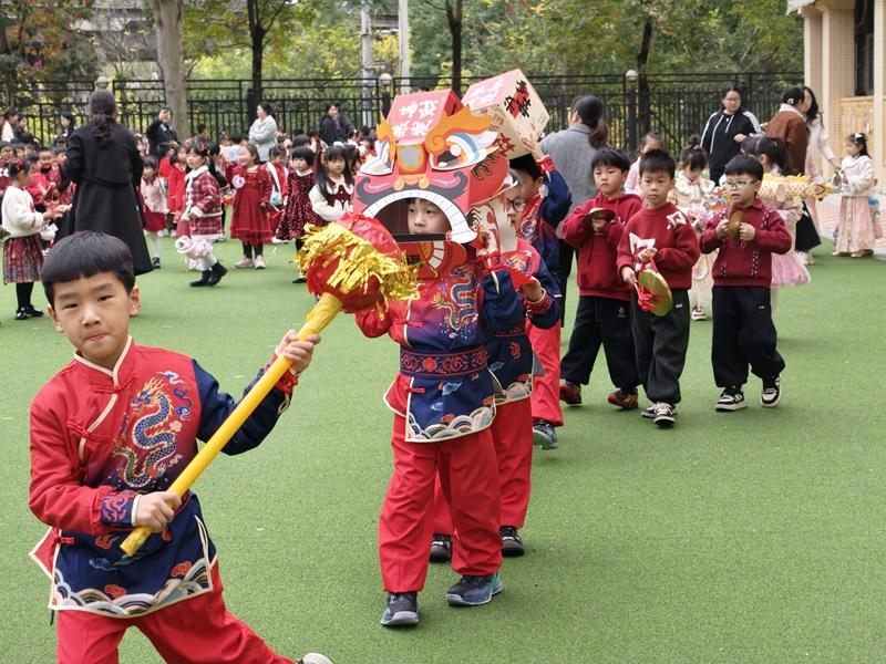猜灯谜。 最引人瞩目的当属全园花灯巡游,将节日氛围推向高潮。伴随着铿锵有力的锣鼓声,舞狮队欢腾开道,孩子们提着形态各异、五彩斑斓的花灯,有序前行。灵动的狮子腾跃起舞,锣鼓声此起彼伏,与孩子们手中的花灯、灿烂的笑脸交相辉映,整个校园洋溢着浓浓的节日喜气。