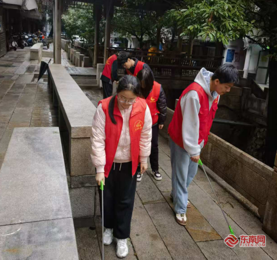 居民们体验手工制香。三坊七巷社区供图 同日,三坊七巷社区组织辖区志愿者们冒雨在安泰河畔开展“清洁家园 护河爱水”志愿活动。志愿者们认真清理河道杂物、路面垃圾,以实际行动守护绿水青山。同时,向居民与游客宣传绿色环保理念,倡导垃圾分类、节能减排,带动更多市民参与到生态保护行动中来。