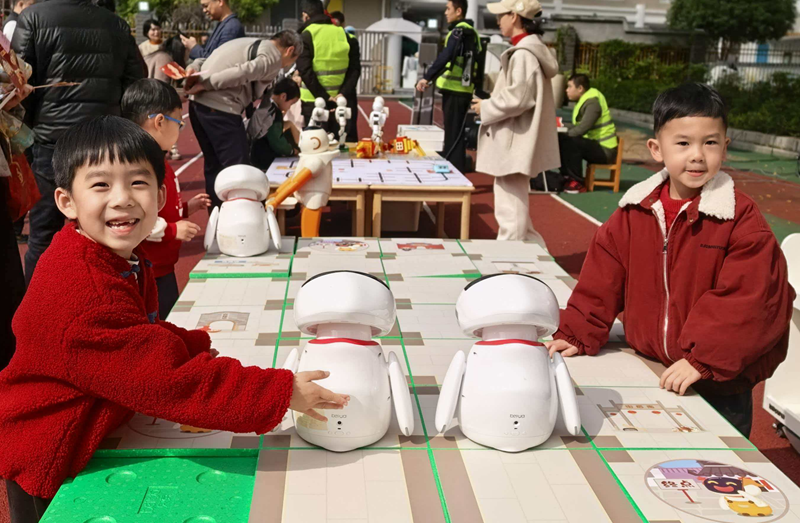 无屏编程。胡艺 摄 庙会现场民俗雅集与科创体验相互辉映。民俗板块,非遗代表性传承人指导孩子们体验创意灯笼制作、糖画等传统技艺,舞狮投壶、赛马大会等民间游戏趣味十足,冰糖葫芦、围炉煮茶让孩子们在互动中感受民俗魅力。科创板块设六大特色场馆,孩子们通过AI互动、无屏编程、动力探秘、静电体验等活动沉浸式探索科学奥秘,种下好奇与探索的种子。