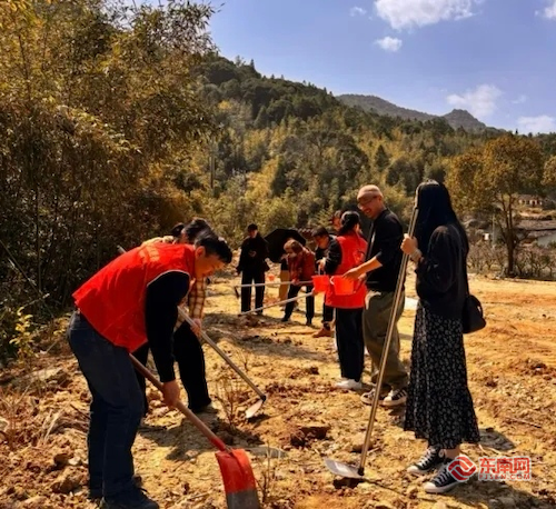 植树花苗。三坊七巷社区供图 活动期间,三坊七巷党委向九峰村委捐赠一批闽都文化书籍,并开展座谈交流。与会人员结合当地红色文化与绿色发展实践,围绕树立和践行正确政绩观谈心得、讲感悟,进一步凝聚思想共识。