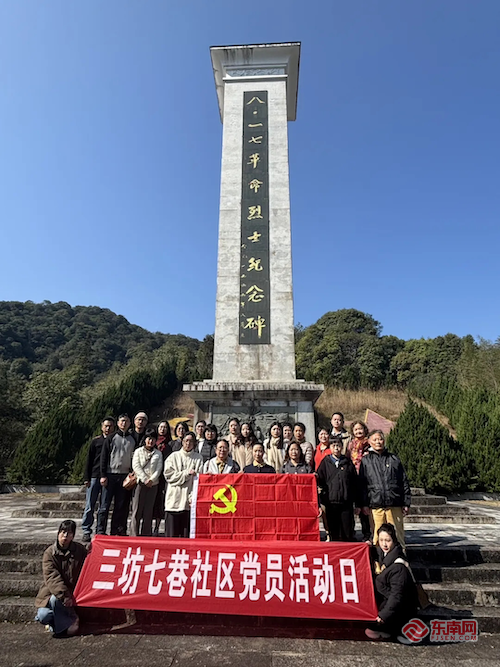 东南网3月12日讯(本网记者 朱琳 通讯员 林鹏群)春风添新绿,初心映党旗。在第46个植树节来临之际,为深入学习贯彻党的二十大精神,推动党建与生态文明建设深度融合,鼓楼区三坊七巷社区党委组织30余名党员赴晋安区开展“传承红色基因,践行绿色使命”主题党日活动,以红色教育铸魂、以绿色实践赋能,锤炼党员党性、凝聚生态共识,为社区高质量发展注入红色动能与绿色活力。 上午8时,党员们统一乘车前往晋安寿山八一七革命烈士公园。途中,社区党委书记介绍活动流程与安全事项,党员们精神饱满、交流热烈,共话红色初心与绿色担当。 抵达公园后,庄严肃穆的革命氛围令人心生崇敬。作为福州重要爱国主义教育基地,公园承载着福州解放的厚重记忆。在讲解员带领下,党员们依次瞻仰牌坊、纪念碑、烈士墓,认真聆听历史讲解:50级台阶象征福州解放50周年,17米高纪念碑铭记8月17日福州解放日,八位猪蹄峰战役烈士长眠于此。一段段峥嵘往事、一个个历史细节,让大家驻足凝视、凝神感悟,仿佛重回烽火岁月。
