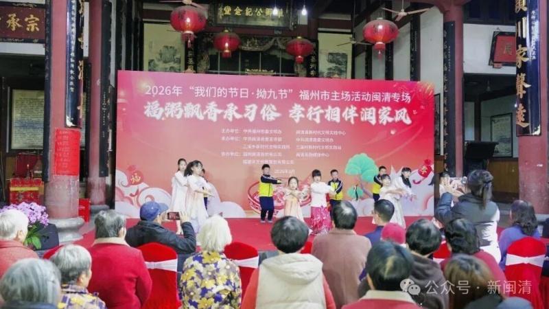 3月12日上午,由中共福州市委文明办、闽清县新时代文明实践中心主办,中共闽清县委宣传部等单位承办的2026年“我们的节日·拗九节”福州市主场活动闽清专场,在三溪乡陈氏祠堂(福州市级公民思想道德教育馆)举行,现场200余名老年代表与各界群众共庆佳节。