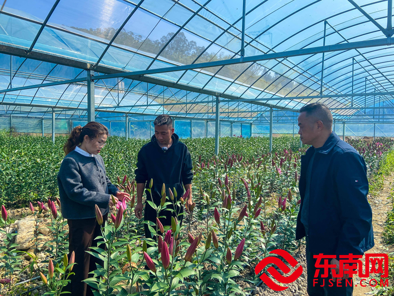 陈德敏(左)、江立燊(中)和李君彬(右)一起探讨百合花生长、销售等问题。(黎臻懋 摄) 江立燊动了心。但当他走进那片大棚时,心里凉了半截——土地板结,满是石块。“当时钩机挖下去,都是底层的生土,肥力极差。”他没退缩,自掏腰包买了几十吨有机肥,高温闷棚杀菌,硬是把贫瘠之地一点点改良。村里也给了支持:前几个月免租金,让他安心改土。 科技特派员“揭榜”解难 种球下地后,技术难题接踵而至。闽侯县科技局创新打造的“科技特派员融合服务平台”发挥了关键作用。新坡村在平台上发布“百合鲜切花高效培育与花期调控技术”需求榜单,来自延平区的“延欣园艺”科特派团队第一时间“揭榜”。 团队专家结合新坡村的土壤气候,量身定制技术方案,通过“线上指导+实地驻点”全程跟踪。江立燊有了专属“求助热线”:“我遇到问题就拍照发过去,有时一天打好几个电话。他们从不嫌烦,实在解决不了,就专程从延平跑下来。”