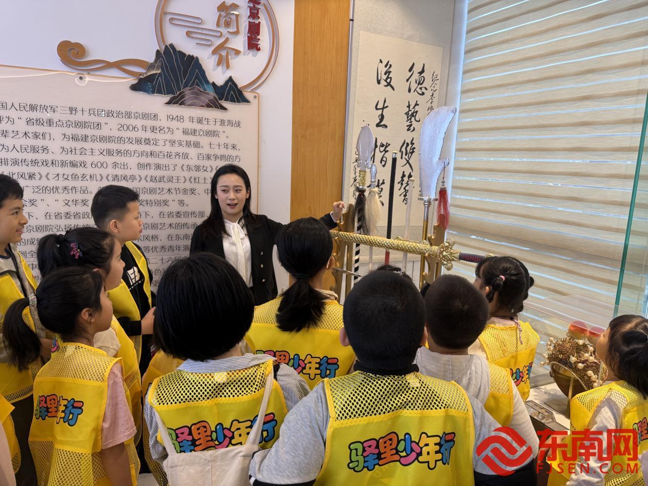 研学实践活动现场。驿里社区供图 活动伊始,孩子们在京剧演员腾皖鲁的引导下有序参观国粹陈列馆,让孩子们直观感受国粹深厚底蕴,在历史脉络中读懂文化传承的意义。