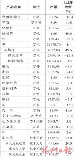 限额以上单位商品零售额中,粮油、食品类零售额比上年增长25.8%,饮料类增长17.7%,烟酒类下降4.2%,服装、鞋帽、针纺织品类下降0.5%,化妆品类增长43.1%,金银珠宝类下降14.4%,日用品类下降4.8%,家用电器和音像器材类增长21.9%,中西药品类增长11.0%,文化办公用品类增长33.7%,家具类增长11.3%,通讯器材类增长20.2%,建筑及装潢材料类增长6.3%,石油及制品类下降11.1%,汽车类增长5.3%。 全年限额以上通过公共网络实现的商品销售额比上年增长16.8%。 六、固定资产投资全年固定资产投资与上年持平。第一产业投资增长54.0%;第二产业投资增长17.1%, 其中,工业投资增长17.2%;第三产业投资下降11.0%。基础设施投资下降4.7%。全年到位资金比上年增长2.9%。 表5 2025年分行业固定资产投资情况