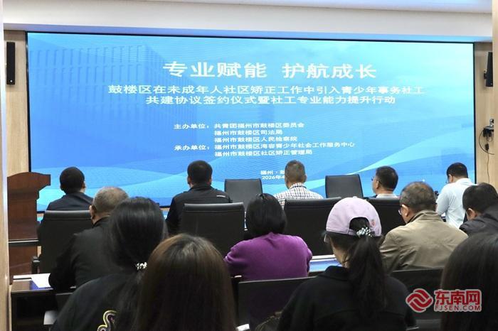 东南网4月15日讯(本网记者 朱琳 文/图)4月15日上午,福州市鼓楼区“专业赋能 护航成长”未成年人社区矫正共建协议签约仪式暨社工专业能力提升行动,在鼓楼区司法局社区矫正指挥中心举办。活动由共青团鼓楼区委员会、区司法局、区人民检察院主办,区社区矫正管理局、海容青少年社会工作服务中心承办。 活动伊始,海容社工中心主任李蕴珊介绍了本次合作的特色亮点,以及青少年事务社工规范融入未成年人社区矫正工作的具体实施计划。