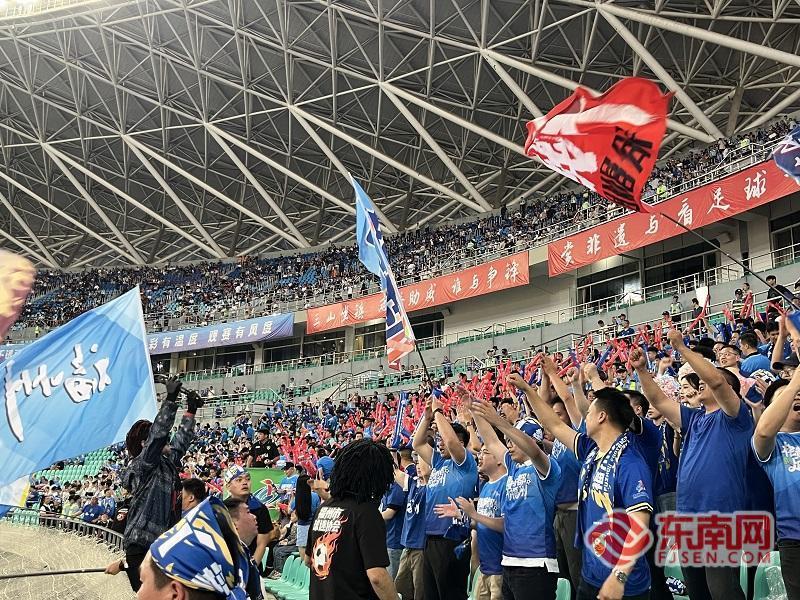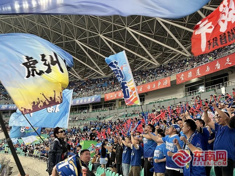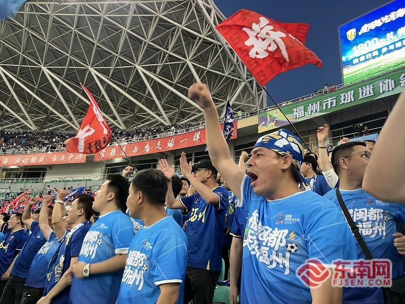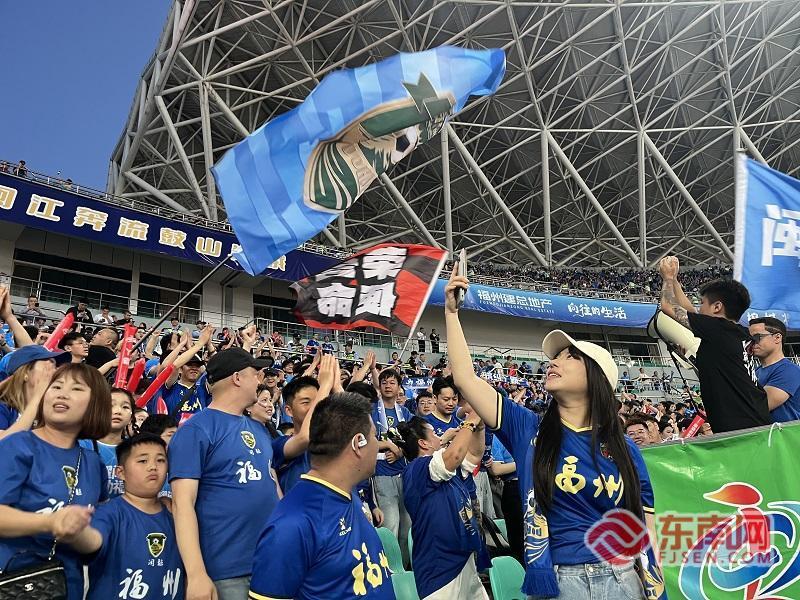 现场,球迷们挥舞福州队助威旗帜、手持加油棒,整齐划一的呐喊声此起彼伏,响彻体育场,用最真挚的方式为福州队加油打气。