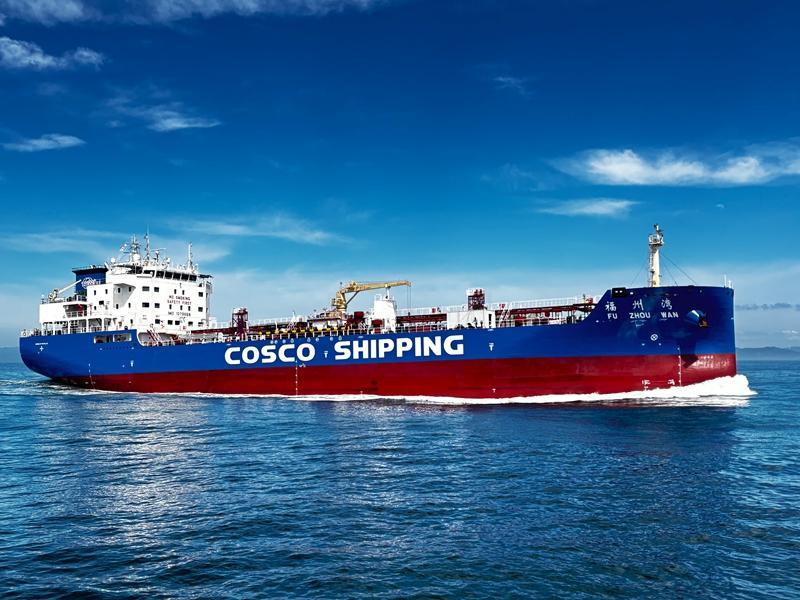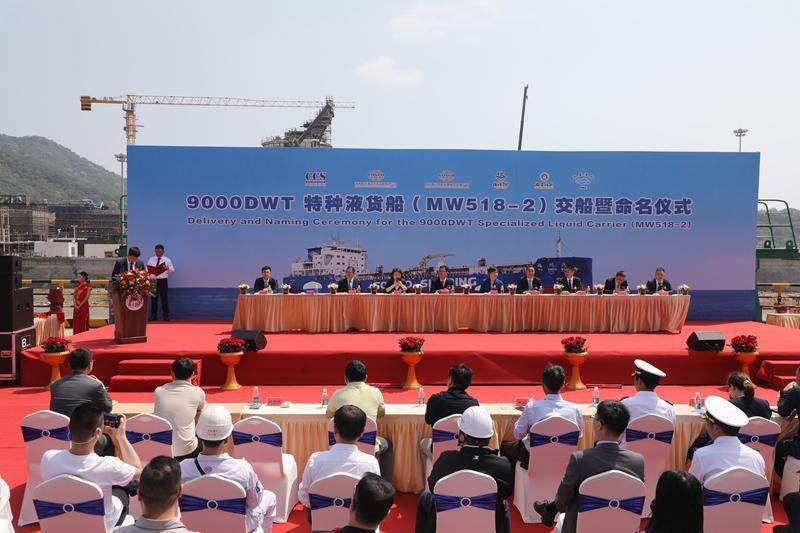 “福州湾”号(马尾造船 供图) 东南网4月20日讯(记者 黎臻懋 通讯员 洪秋苗)今日,福建船政旗下马尾造船为中远海运特运建造的9000DWT特种液货船(MW518-2)举行交船暨命名仪式。新船被命名为“福州湾”号,在数字化交付、水下辐射噪音控制等领域创下两项“第一”,同时获得生物柴油燃料和智能船舶两项重要认证,标志着福建船舶工业在高端化、智能化、绿色化发展上迈出重要一步。