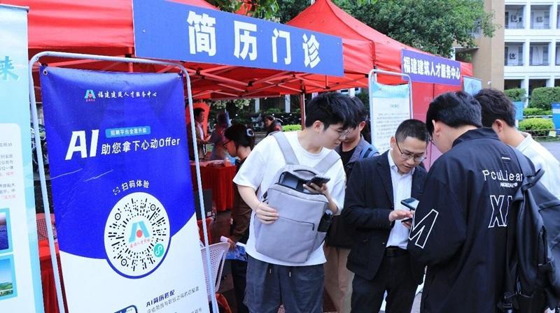 近日,在福州大学举行的“阳春送岗、职引未来”福州大学2026届土建类毕业生春季大型专场招聘会上,AI简历诊断、AI模拟面试、AI简历优化、AI职位匹配、AI心理健康测评首次亮相,吸引了众多用人单位和应聘毕业生的目光。在工作人员引导下,应聘人员通过扫描简历门诊二维码,输入简历,就可以对自己编撰的简历进行修改优化,并自动匹配用人单位推出的需求岗位。在心理健康测评区,应聘人员在AI人脸扫描仪前进行心理健康测评,一分钟就能精准检测到应聘人员的心理状况,并给出测评结果,为用人单位精准识别应聘人员的职场心理素质,确保用人单位招聘到更优秀的人才。