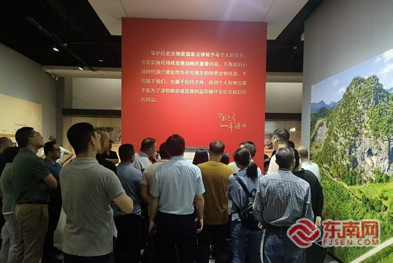 学员走进三明万寿岩旧石器时代遗址。 在万寿岩国家考古遗址公园,学员们深入了解旧石器时代遗址保护历程,深刻领会习近平总书记对万寿岩遗址保护的重要指示精神,感悟文物保护与经济发展协同推进的生动实践,进一步树牢生态文明理念与正确政绩观。