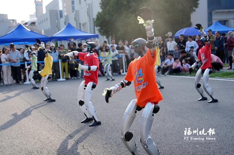 机器人跟随旋律精准卡点,身姿灵动。 旋律响起,机甲起舞。4月25日下午,一场别开生面的具身智能机器人舞团展演在福州西湖公园北门福建博物院林则徐雕像前举办,酷炫的表演吸引了许多大人小孩驻足围观,现场赞叹声此起彼伏。 此次展演聚焦具身智能技术的硬核实力,10台机器人同步献艺。它们身穿印有数字中国建设峰会会徽的彩色T恤,手戴茉莉花环,跟随旋律精准卡点,身姿灵动,以科技语言演绎街头潮流,打造了一场亮眼的智能科技秀。整场演出观赏性与趣味性兼备,为全年龄段的观众带来了视听盛宴。