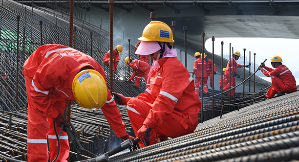 福平铁路工地上,工人正在架设接触网导线。记者 郑帅摄 福平铁路 “蜘蛛侠”爬柱架导线 24日下午3点30分许,记者来到福平铁路福州至福州南区间闽江大桥施工段。骄阳似火,江风裹挟阵阵热浪扑面而来,工人们正为架设铁路接触网导线作准备。 戴好安全帽、线手套,套上脚扣,穿好反光背心,“90后”接触线作业工余宗超化身“蜘蛛侠”,娴熟地爬上锚柱,为架设导线“打头阵”。 烈日炙烤下,钢轨的温度超过60℃,站在铁轨上仿佛“蒸桑拿”。顶着高温作业,考验工人们的毅力和体能。“一天要爬五六趟,热是肯定的,但为了铁路建设,苦点、累点都值得!”十几分钟的作业,余宗超早已大汗淋漓。 把因疫情耽误的时间抢回来 “嘟,嘟,嘟……”下午3点50分,钢轨上的一台恒张力架线车蓄势待发,吊车将接触线线盘放到预定位置,工人们有条不紊地固定线盘。烈日下,中铁武汉电气化局福平项目部接触网作业队队长倪强在一旁指挥,豆大的汗珠顺着他的脸颊不停往下掉,汗水已浸湿他的短袖。 倪强来自四川,在一线工作已有15年。当日零时至6时,他还带队实施了福平铁路引入福州南站既有三道接触导线的更换。虽然只睡了不到5个小时,但他的脸上看不出丝毫疲惫,“虽然天气很热,但大家的干劲更足,争取把因为疫情耽误的时间抢回来”。 倪强说,他们负责福平铁路全长约88正线公里接触网工程施工任务,5月底以来,已架设56.2正线公里。 “准备好咯!”架线车操作台上,一名工人做了个手势,示意一切准备就绪。“走,发车!”随着一声令下,马达声轰鸣,车子缓缓沿轨道驶向前方。烈日下,十几名工人们有节奏地放线、架线,用汗水定格夏天最美丽的画面。 洪山桥新建左幅桥 一天换两套衣服 当天下午4点,记者进入洪山桥新建左幅桥工地。在3号主墩上方,20多名工人穿着厚厚的工服,手握滚烫的钢筋,埋头绑扎、焊接。一丛丛电火花在工人手上开了又灭,发出夺目的光芒。 烈日炙烤下,每个人的脸上都是汗水涔涔。班组长胡贻忠说,箱梁里的温度比地上要高二三摄氏度,钢筋摸上去都是滚烫的。有的工人还要钻进钢筋笼中施工,随着气温不断攀升,就像在蒸屉中一样。为什么天气这么热还穿着厚衣?面对记者的疑惑,胡贻忠笑道:“不穿这么厚,钢筋一刮身上就是一道口子,焊花溅到身上也会被烫伤。” 说话间,工人谷正锁从顶板上走下来喝水。记者看到,他身上的工服湿透了。“一天要喝五六升的水,每次喝完水,没多久就变成汗流光了。”他告诉记者,下工后,工服都能拧出水来,自己一天要换两套衣服。