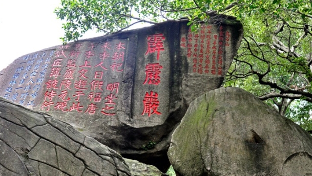 霹雳岩。(市文物局供图) 福州新闻网9月22日讯(福州日报记者 吴晖)仁者乐山。当人们徜徉在乌石山、于山时,就会发现从唐代至今的各种石刻,数量众多,种类齐全。篆书、隶书、楷书、草书、行书俱臻其妙。难得的是大部分石刻纪年明晰、书法遒劲、雕刻精湛,是不可多得的书法艺术宝库,也是研究摩崖石刻、石雕造像以及福州历史人物事件重要的实物资料。 发现档案 乌石山摩崖石刻 乌石山简称乌山。山上从唐至近代原有摩崖石刻299段,现存169段,分布全山,以邻霄台、冲天台、道山亭等处尤为密集,著名的有唐代李阳冰,宋代程师孟、李纲、朱熹、梁克家,明首辅叶向高、都御史林廷玉,清状元王仁堪等人石刻,诗词、歌赋、传记、题记、游记文类齐全。一些石刻还记载了重大历史事件,如霹雳岩石刻记录了宋绍兴二年李纲因抗金被罢相,参政知事孟庚与李纲等11人聚于乌山瑞云庵议事等。 乌石山造像有3处8尊。乌石山望潮峰南麓高浮雕佛像3尊,镌于北宋初,内镌一佛两菩萨坐像。乌石山东南麓弥陀寺下方浅浮雕佛像4尊,凿于五代末,造型端庄,剔地浅浮雕,细线阴刻衣褶线条,形态稚拙。乌石山北麓大士殿内雷劈观音1尊,镌于明代。 于山摩崖石刻 于山原有宋至近代摩崖石刻167段,现存110段,主要分布在鳌峰顶、狮子岩、廊然台、兰花圃、戚公祠等处,包括宋代程师孟、陈襄,明都御史林廷玉,清闽浙总督李率泰等人石刻。鳌峰顶上的北宋淳化元年(990年)吕文仲题名刻石,是福州最早的宋代崖刻。山南的《南较场演武厅铭》,全段高3.3米,字体苍劲,是福州市内最大的摩崖石刻。 于山摩崖石刻与故事传说、历史人物相联系,具有鲜明的时代特征,如明代督舶太监尚春题刻是福州对外贸易的资料、清代闽浙总督李率泰在戚继光醉酒处岩刻“醉石”等。