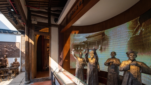 台湾会馆《五人上书》群雕。 福州新闻网11月2日讯(福州晚报记者 何佳媛/文 见习记者 林双伟/摄)1日上午,福州台湾会馆复建揭牌,其前身是清末专供台湾士子来榕参加科举考试的休息之所,未来将打造成两岸交流新平台。该馆将于近日免费开放。