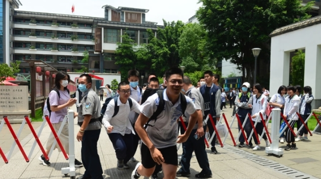 27日12时20分,考点放行,考生们百米冲刺般飞奔出考点。记者 叶诚 摄