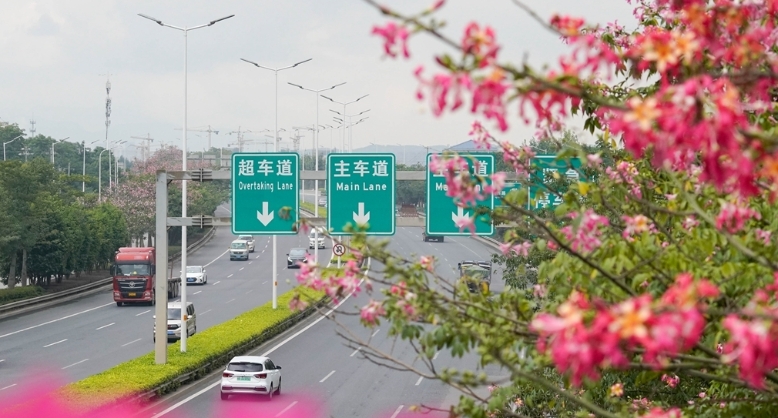 福州三环辅道上,美丽异木棉开放。新华网 蒋巧玲 摄