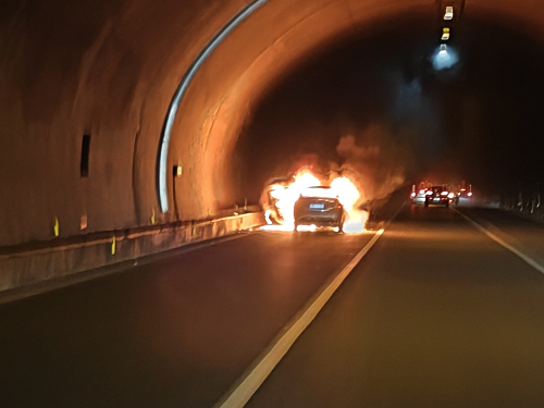 小车在隧道内发生事故着火 福州高速执法支队供图 东南网5月1日讯(记者 李牧晨 通讯员 肖瑜敏 袁耿峰)“快打开消防栓,接上消防水管,我们先把火势控制下来,不然可能发生爆炸!”。高速公路隧道内多车追尾,其中一辆小车起火,现场执法员迅速将火势扑灭,避免了更大事故的发生。这惊险的一幕发生在5月1日上午G1523甬莞高速油车岭隧道内。