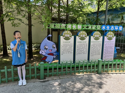 “小河长”讲解员对公园标识进行解读和引导 晋安区河长办供图 在“六一”国际儿童节来临之际,本次揭牌活动结合公园旁福州二中教育集团晋安学校的“六一”活动,众多“小河长”讲解员对每一处河长制主题公园标识都进行深刻解读和宣传引导,倡议居民群众以主人翁的姿态立说立行,共同“护河爱水、清洁家园”。