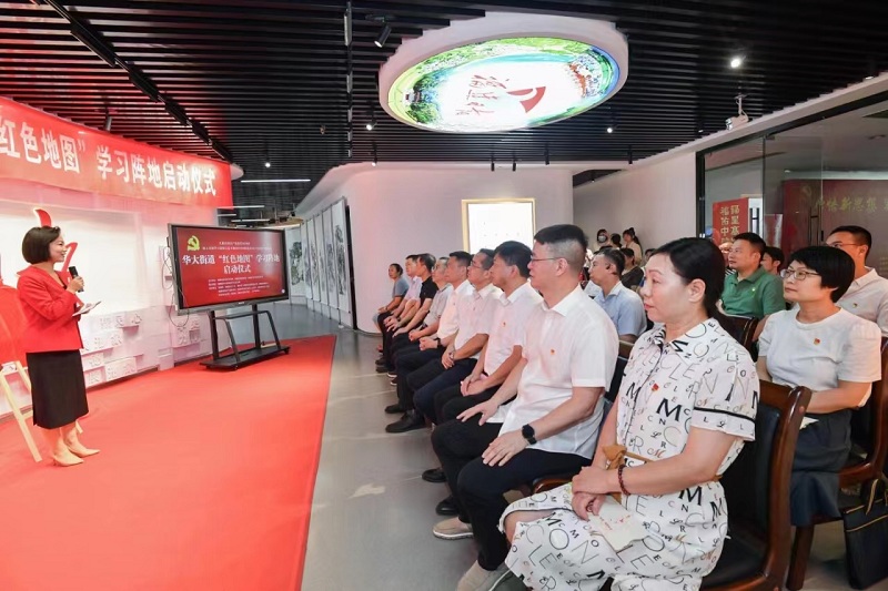 华大街道“红色地图”学习阵地揭牌仪式。东南网记者 陈巧玲 摄 在现场来宾热烈的掌声中,福建日报社党组成员、副社长、机关党委书记吴孝武,鼓楼区委常委、组织部部长陈恒共同为华大街道“红色地图”学习阵地揭牌,宣布华大街道“红色地图”学习阵地正式启动。