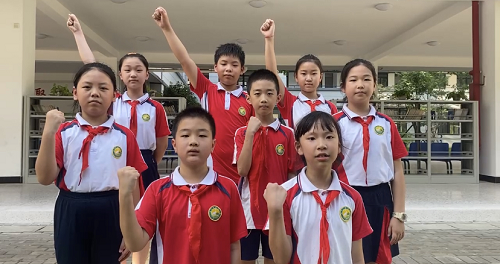 鹤林小学红领巾广播站全体成员深情朗诵诗歌《勿忘九一八》。鹤林小学供图