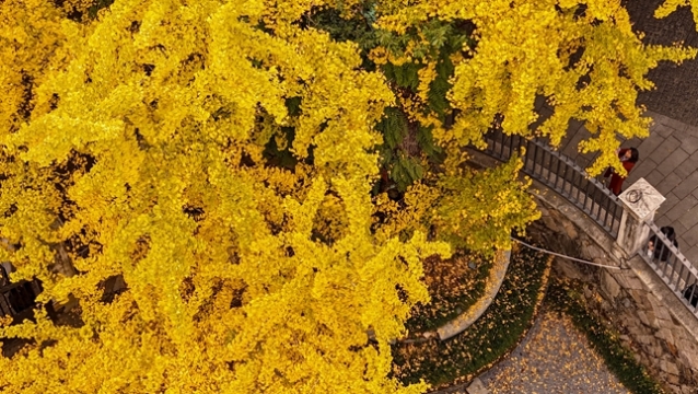 12月底,石厝教堂门前的百年银杏迎来最佳观赏期,满树银杏金黄绚烂,洒下遍地金黄,石厝教堂迎来了一年中最美的时刻。园林专家介绍,最佳观赏期预计在元旦前后结束。