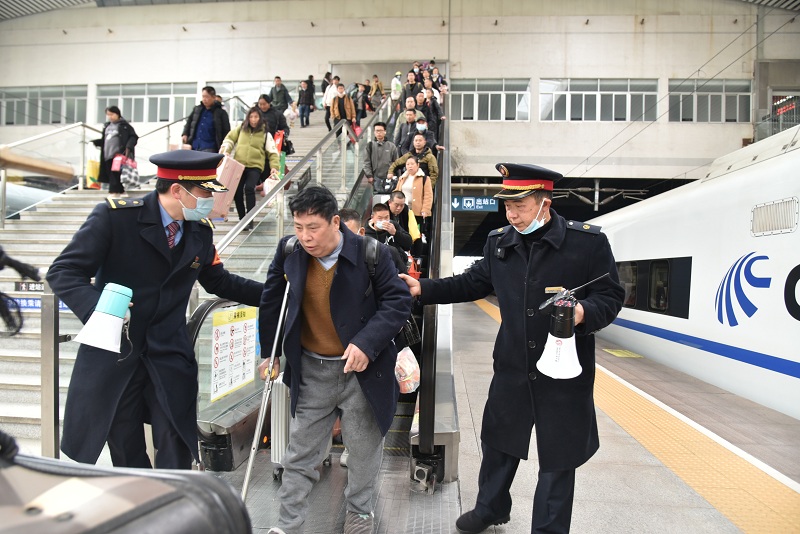 铁路工作人员协助行动不便的旅客乘车。江曲 摄 截至目前,1月30日开往成都方向车票已售完;开往贵阳、重庆、达州、郑州、长沙方向余少量有席车票;往北京、深圳、厦门、上海、武汉、南昌方向均有余票。为满足旅客出行需求,今日福州火车站增开:G9872、K4186、K4286、K4826、K4382、G4428、D9970、C5102、D9982、G9876、G9863、G9871、G4427、G9875次春运临时旅客列车,分别开往西安、南充、高兴、万州、贵阳北等方向。 1月30日福州站实际开行123.5对旅客列车(始发终到64对,经停59.5对),福州南站实际开行132.5对旅客列车(始发终到35.5对,经停97对)。