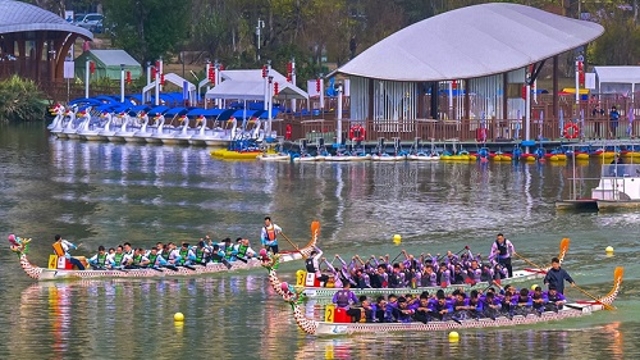 晋安湖“龙抬头”龙舟盛事来了 巡回赛10日开桨,“飞龙”特技上演,集市人气旺 11日是农历二月初二,民间有“二月二,龙抬头”的说法。10日,2024年“百里水上福道 千年闽都画卷”龙舟巡回赛的第一站比赛在福州晋安湖隆重举办。 本站比赛由福州市体育局、晋安区人民政府、福州水务集团有限公司主办,晋安区文体旅局、福州市水务文旅有限公司承办,以“乐享晋安”为主题。16支龙舟队参与500米直道竞速角逐。现场还有“水上飞龙”特技表演以及热闹的龙舟集市。 龙舟巡回赛现场。 水上:龙舟驰骋晋安湖 10日9时许,晋安湖公园环湖区域热闹非凡。比赛主看台附近已经挤满了观众。 10日9时30分许,龙舟巡回赛在晋安湖公园拉开帷幕。“今天看龙舟,明天龙抬头,应景!”一名观众开心地说。 比赛中,每4支龙舟队伍为一组同场竞技。比赛口令发出,龙舟如箭离弦。伴随着声声鼓响,龙舟手们挥桨击水。春风里,一条条龙舟在碧波荡漾的湖心赛道上你追我赶,演绎了一出“春龙飞驰”的好戏。 “太快了!”“追上来了!”……随着龙舟距离终点越来越近,观众区开始沸腾。大家为领先的龙舟叫好,为“逆袭”的龙舟喝彩,为率先撞线的龙舟欢呼。 “赛道非常OK!”晋安鼓一龙舟队的队员孙宗山说。这是来自晋安区的龙舟队,他们是唯一的“主场”作战队伍,此前已集训了40多天。队员们敢打敢拼,首次参赛便取得了第五名。 最终,经过晋级赛、决赛等两个小时的比拼,长乐汇泉龙舟队夺得本站比赛的冠军,福建云厨龙舟队、长乐三溪运动者龙舟队分获亚军和季军。 “水上飞龙”特技表演。 天上:“飞龙”特技表演 “空中飞人很好看!”10日,市民寇女士带着上小学的女儿来看龙舟赛。小朋友称赞“水上飞龙”特技表演很精彩。 原来,10日赛前,主办方举办了隆重的开幕式,现场有龙舟点睛仪式、歌舞表演,还有精彩刺激的“水上飞龙”特技表演。 在“水上飞龙”特技表演中,两名演艺人员身着红色的表演服装,脚踩水上飞行器。马达声轰鸣,表演开始,只见他们从水面腾空而起,在空中翻转腾跃,引得观众争相拍摄喝彩。 70多岁的摄影爱好者老李在现场观看并拍摄了活动场面。“举办这样的赛事很好,既弘扬了福州传统龙舟文化,又丰富了大家的周末文化生活。”老李告诉记者,他住在新店镇,10日乘坐地铁1号线转4号线,在后屿地铁站下车,赶到现场,比赛很精彩,他觉得不虚此行。 地上:龙舟集市人气旺 10日活动现场的龙舟集市人气也很旺。集市上有20多个摊位,汇聚了各式各样的美食,有椰汁、烤肠、鸡蛋仔、咖啡等等,吸引了许多市民和游客。 摊主孙先生的鸡蛋仔摊位生意不错。“我之前听说要举办龙舟赛,现场还要开龙舟集市,就主动报名了。今天现场人气挺旺。”孙先生说。 龙舟集市的美食摊位人气高,“福舟悠游”文创摊位也很火。该摊位有国潮DIY龙舟头、内河文旅吉祥物“珑珑”、创意冰箱贴、“水上会客厅”游船模型等多款福州内河文旅文创产品。其中,国潮DIY龙舟头颇受小朋友欢迎。这种龙舟头拼装好后,可以戴在头上,变身“小龙人”。 福州水务文旅有限公司相关负责人表示,龙舟巡回赛旨在深入挖掘内河文旅资源,推动龙舟运动与内河旅游深入融合。接下来,主办方将继续办好这项福州本土龙舟赛事,助力打响“福舟悠游”内河文旅品牌,吸引更多市民亲近水岸,共享山水之城的福利。(记者 李锦清/文 陈暖/摄) |